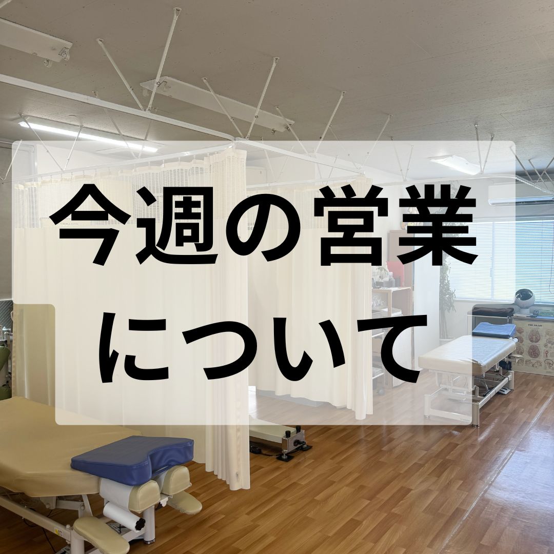 月と火は通常営業です。 水曜日は午前中は渡辺と武内、午後からは武内のみの出勤となります。渡辺は外部での異業種交流会に参加予定です。 木曜日は休診日。 金曜日と土曜日は通常営業となります。 8月も最後の週です。 体のケアを忘れずに無理せず頑張っていきましょう!